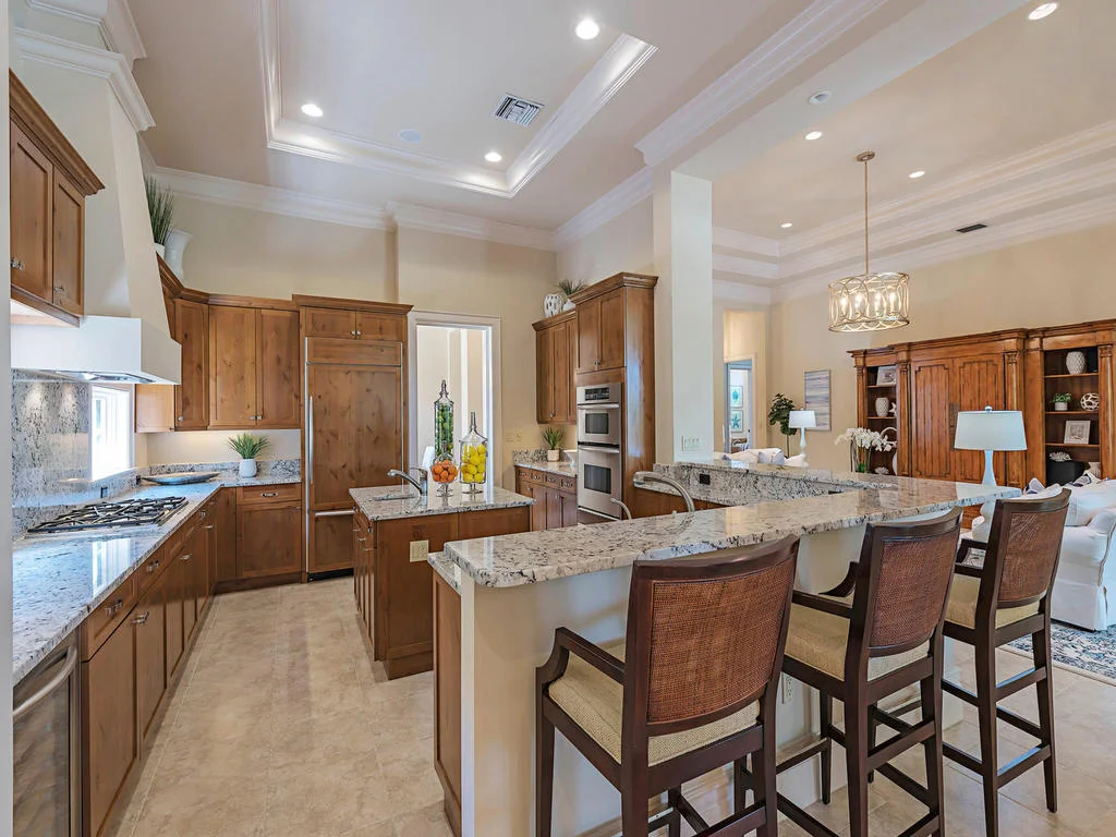Welcome to resort-style living in the quaint Marsh Wren neighborhood within the exclusive Estuary at Grey Oaks Dramatic entry with a 10' Mahogany door, soaring ceilings, quality millwork throughout, great room concept floor plan, with three bedrooms, large office and three and a half baths The large, outdoor lanai is perfect for relaxing and entertaining, with a gas fireplace, automated screens, built-in outdoor kitchen, upgraded marble pool deck, pool and spa, and gorgeous views over the golf course, lake and the clubhouse