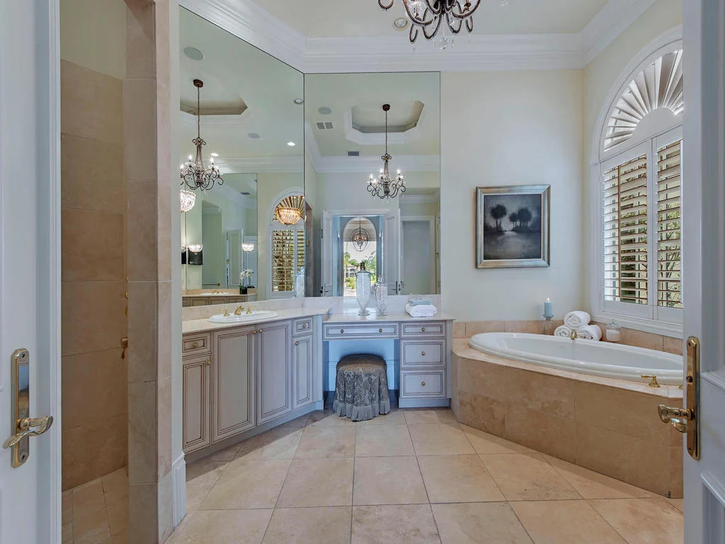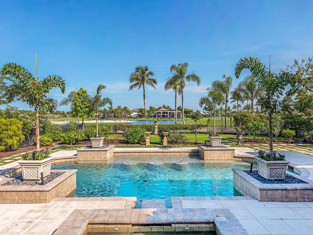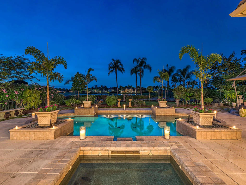 A truly remarkable residence now offered with beautiful, coastal contemporary furnishings, chandeliers, and accessories From the moment you enter, will be mesmerized by the spectacular views, expansive pool and fenced garden, drawing you outside Natural light pours in through the large windows and you are just steps away from the pool and spa