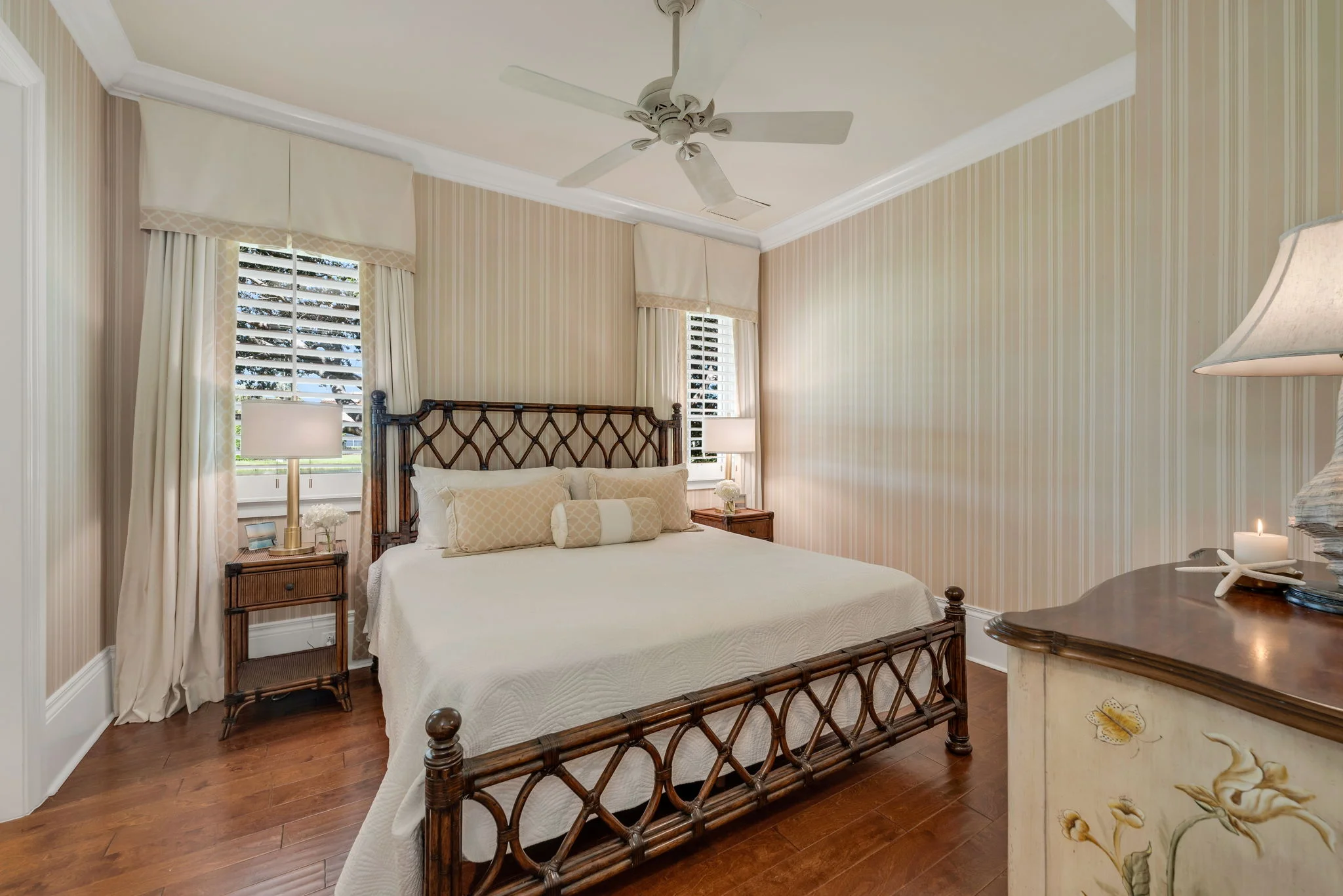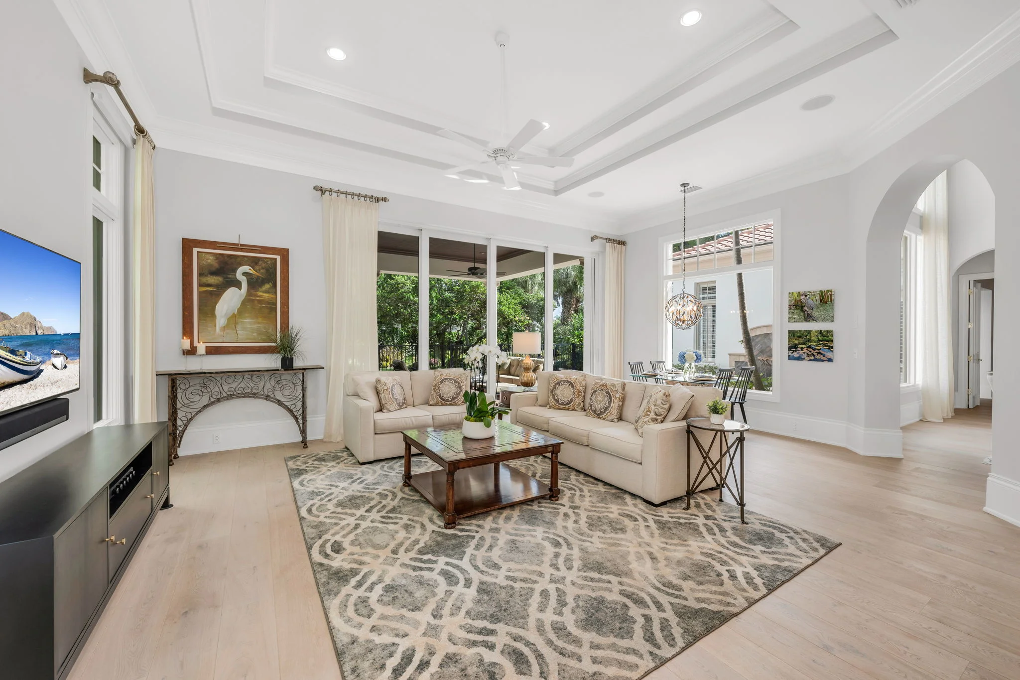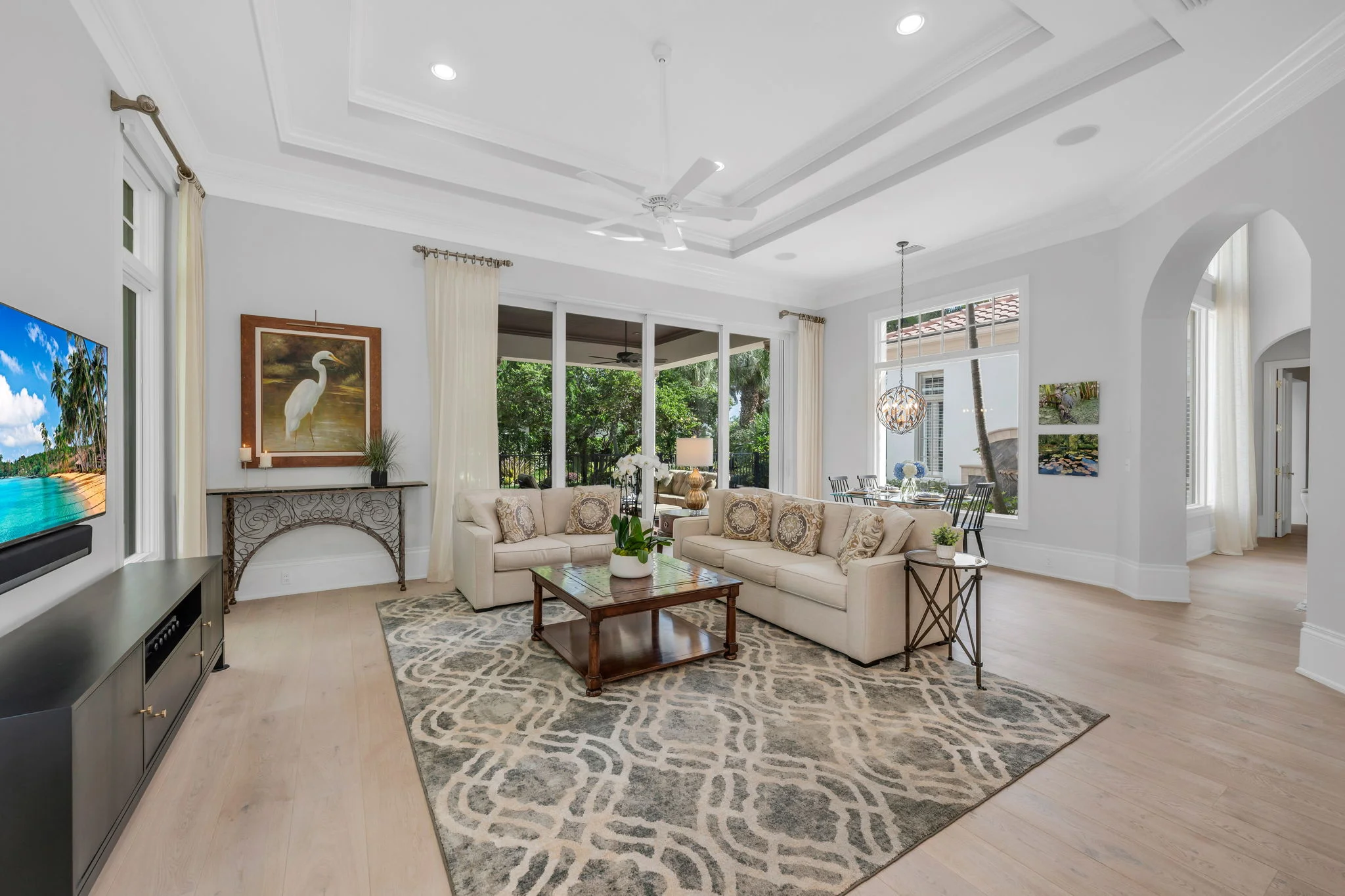 Perfectly positioned on one of the most desirable homesites in Grey Oaks’ sought-after Torino enclave, this elegant two-story residence captures the essence of refined Naples living. Set on a rare corner lot surrounded by lush tropical landscaping, the home enjoys panoramic lake views and a private, garden-like setting that feels both serene and secluded—yet just moments from the heart of the Club. Built in 2007 and thoughtfully transformed with timeless updates, this 3,950-square-foot residence (4,922 total) offers an ideal balance of sophistication and comfort. The open layout includes 4 bedrooms plus an office, and 4 full + 1 half baths, blending indoor elegance with effortless outdoor living. Wide-plank white oak floors lend warmth and texture to the main living areas and the first-floor primary suite, while walls of glass fill the interiors with natural light and frame views of water, sky, and lush greenery. At the heart of the home, a stunning remodeled kitchen showcases sleek cabinetry, designer lighting, and professional-grade appliances. The large island invites gathering with family and friends, while the adjacent dining and living spaces flow naturally to the lanai—where everyday moments transform into something extraordinary. Step outside, and the lanai opens to what feels like your own private botanical garden: a tranquil oasis where colorful blooms and graceful palms sway in the breeze, mirrored in the calm waters of the lake beyond. It’s a setting that invites morning coffee al fresco, sunset cocktails with friends, or quiet reflection surrounded by nature’s beauty. The spacious primary suite offers a private retreat with tranquil garden views, dual closets, and a spa-inspired bath designed for relaxation. Three generous guest suites—two upstairs and one on the main level—ensure that family and guests enjoy comfort and privacy. Additional highlights include impact-resistant windows and doors throughout, natural gas, and a two-car attached garage with the opportunity to add a golf cart garage to the front office. Every element of this residence was designed for ease, elegance, and connection to its surroundings. Living in Grey Oaks means enjoying world-class amenities, including three championship golf courses, an elegant clubhouse, resort-style pool, tennis, pickleball, and a state-of-the-art wellness center—set within a lush, guard-gated community just minutes from Naples’ white-sand beaches and Fifth Avenue’s fine dining and boutiques. This remarkable Torino residence represents more than a home—it’s a private sanctuary where architecture, nature, and lifestyle come together in perfect harmony. Experience the beauty, tranquility, and prestige of Grey Oaks living at its finest.