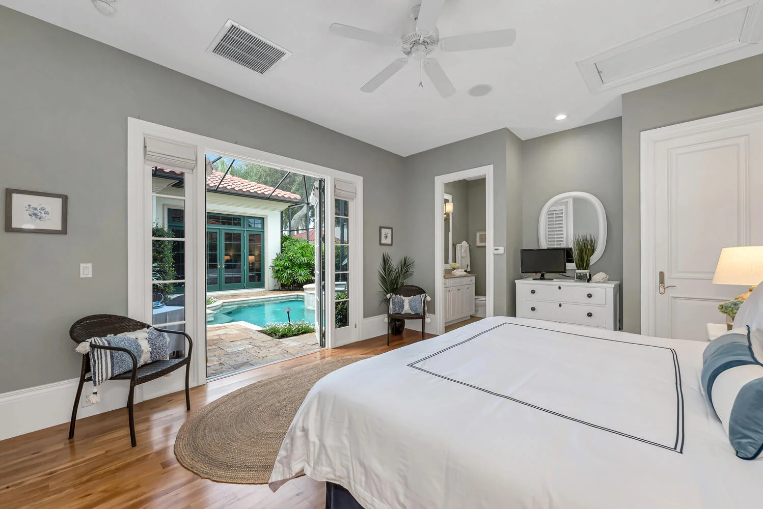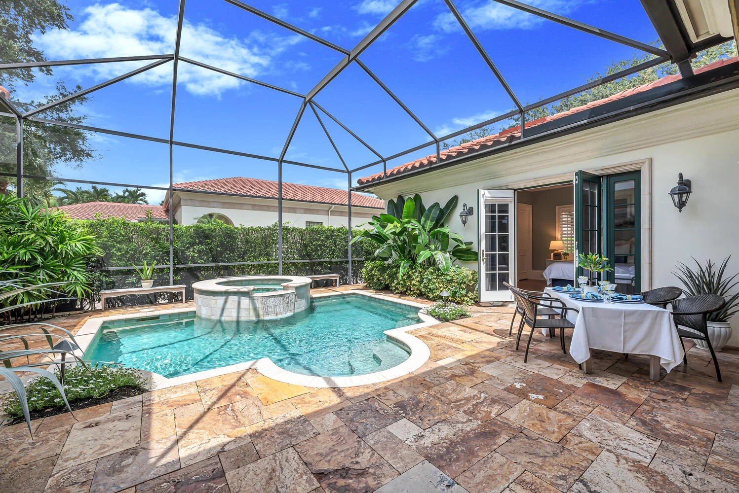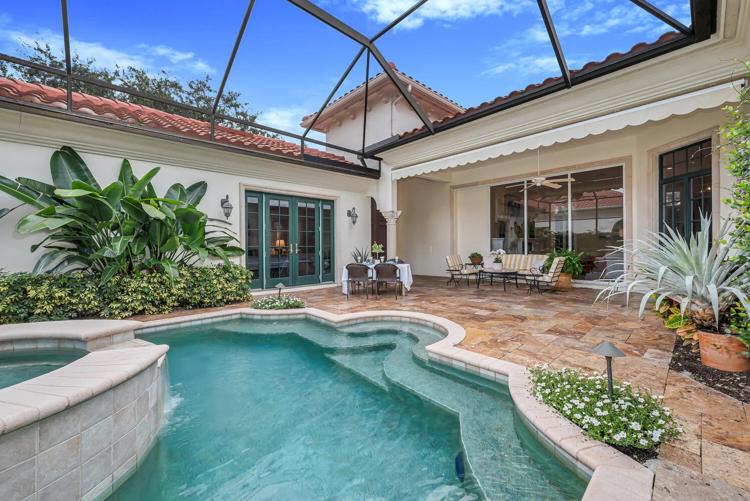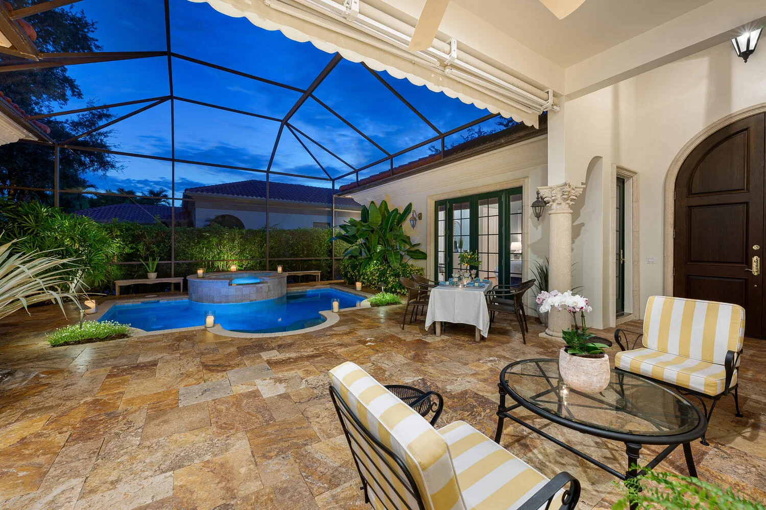 Welcome and step inside to your new home, with it’s ultimate privacy and resort-like feel This residence is made for entertaining, with sliders that pocket back to enjoy your pool and plenty of room for al fresco dining your custom, retractable awning extends far out to the pool! Better yet, gather with friends and family in the heart of this home, where images of European boutique hotel parlors come to mind, with a dining room that contains a bespoke bar from Turkey, for creating memories before and after dinner