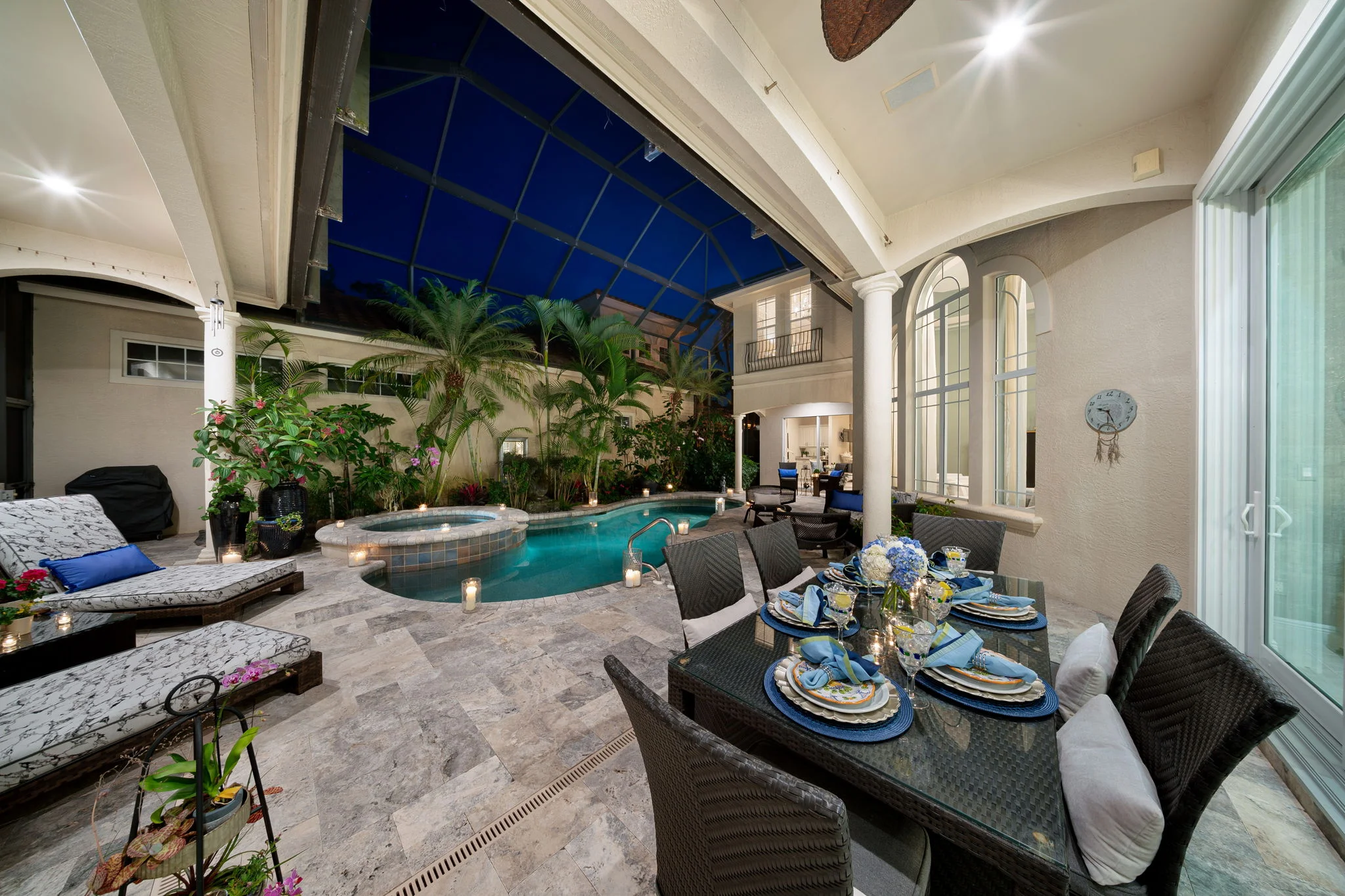 Indulge in the epitome of luxury living at this exquisitely designed 2-story villa nestled within the prestigious enclave of Grey Oaks Country Club Offering unparalleled privacy and sophistication, this residence boasts a stunning pool courtyard, meticulously landscaped to create a serene oasis for entertaining and relaxation The expansive floor plan features 3 bedrooms and 3 1/2 baths, complemented by a separate cabana with its own entrance for guest privacy