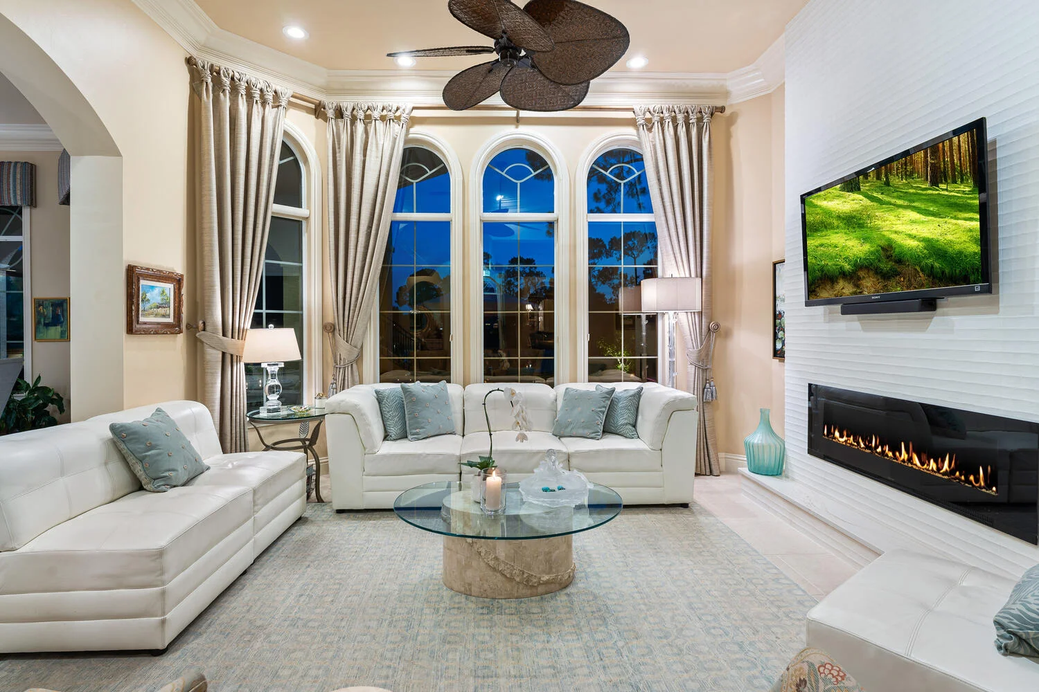 This rarely-available villa has everything one could ask for: updated kitchen with quartz counters, gas range, custom island, whole-house reverse osmosis, new Master bath, powder room, new roof in 2018, new fireplace in the living room, hardwood floors in many rooms and serene views from almost every room in this home This rarely-available villa has everything one could ask for: updated kitchen with quartz counters, gas range, custom island, whole-house reverse osmosis, new Master bath, powder room, new roof in 2018, new fireplace in the living room, hardwood floors in many rooms and serene views from almost every room in this home The extended lanai comes complete with outdoor kitchen, custom, stone fire pit, pergola, fountains, pool and spa, and plenty of room for dining al fresco, while taking in the scenery of your very own resort backyard
