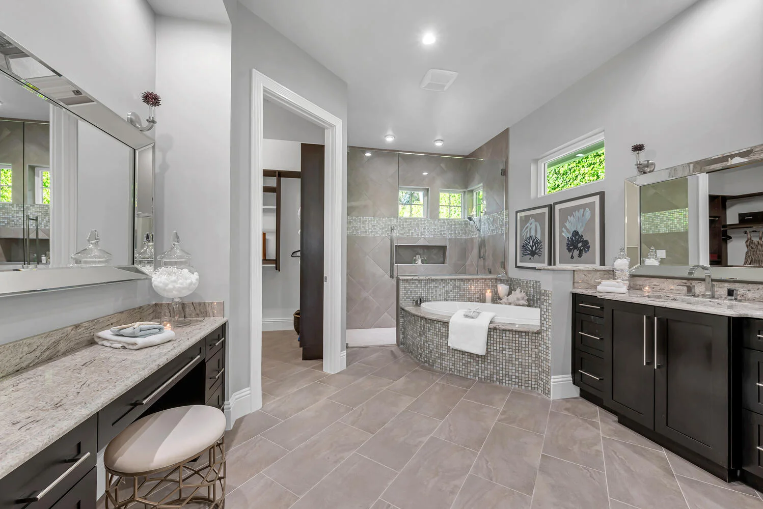 You have just found your home! Sprawling on over half acre of beautiful lake and golf views, this contemporary, chic, yet comfortable Estates residence has luxury finishes throughout The renovated courtyard pool is a resort oasis for your family, with ultimate privacy for entertaining by the pool, and spectacular views of the 5th Fairway, for al fresco dining in back This bespoke residence has two Master Suites, with large, walk-in custom closets, and Guest Cabana on first level, with a private, loft bedroom upstairs, overlooking the pool