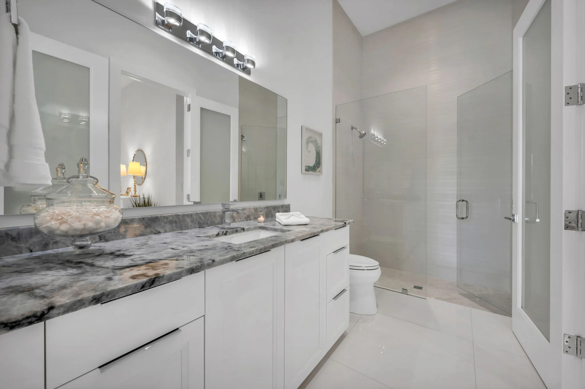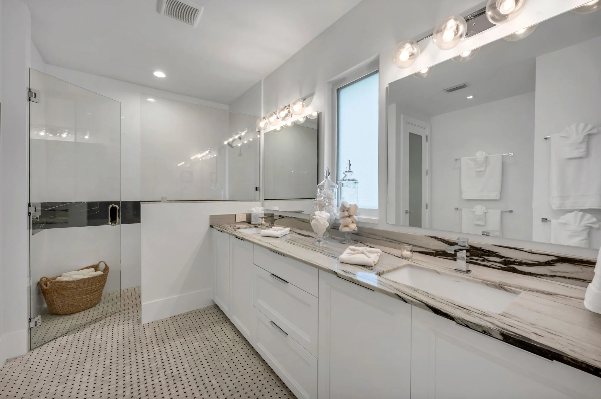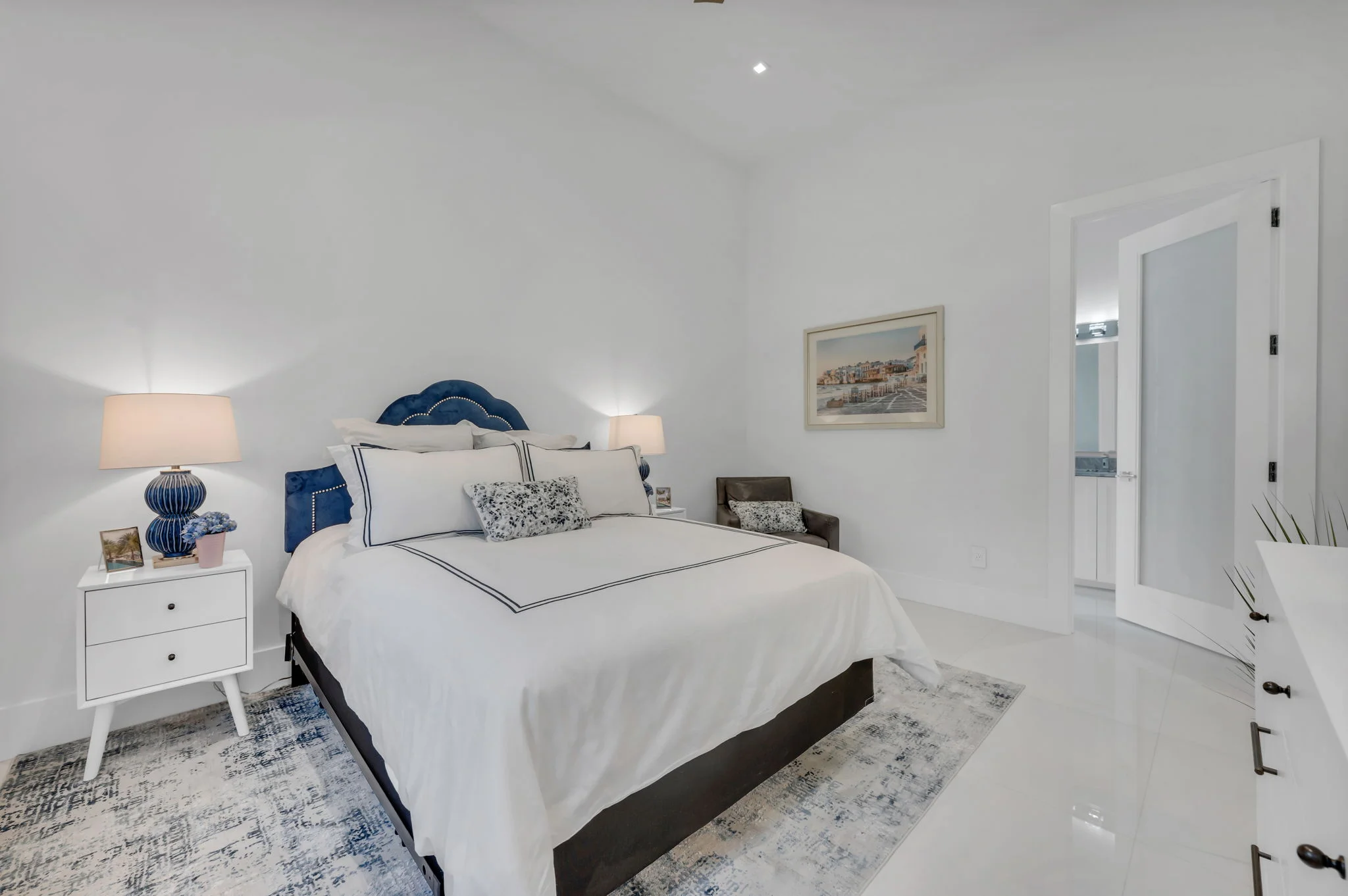 Welcome to this spectacular, contemporary residence, set on a sprawling estate lot, with expansive lake views and the 5th fairway of the newly-opened Pines Course in the distance Another unique feature of this home is the outdoor living space, with summer kitchen, dining and lounge areas, and the fabulous resort pool, completed in 2021 Your guests will enjoy their privacy upstairs, with two bedroom suites, kitchen and living area, and hardwood floors throughout